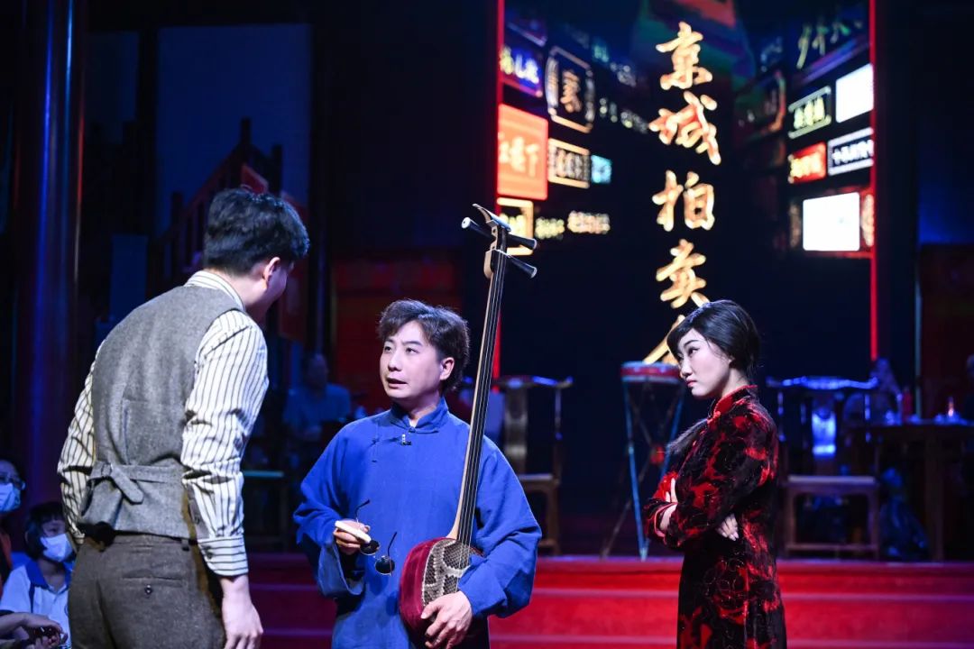 在《京城拍卖会》中,北京曲剧与老舍先生的渊源被深入浅出地道来,《茶馆》《方珍珠》《骆驼祥子》《老张的哲学》等剧目皆改编自老舍原著,而作为北京唯一的地方戏,1952年,北京曲剧正是由老舍命名,开山剧目也是老舍写下的《柳树井》。至今,北京市曲剧团先后演出了12部由老舍小说、剧本改编而成的北京曲剧。2024年是老舍诞辰125周年,北京市曲剧团建团40周年,传承创新的敬意被巧妙藏进了《京城拍卖会》的谐趣体验中。