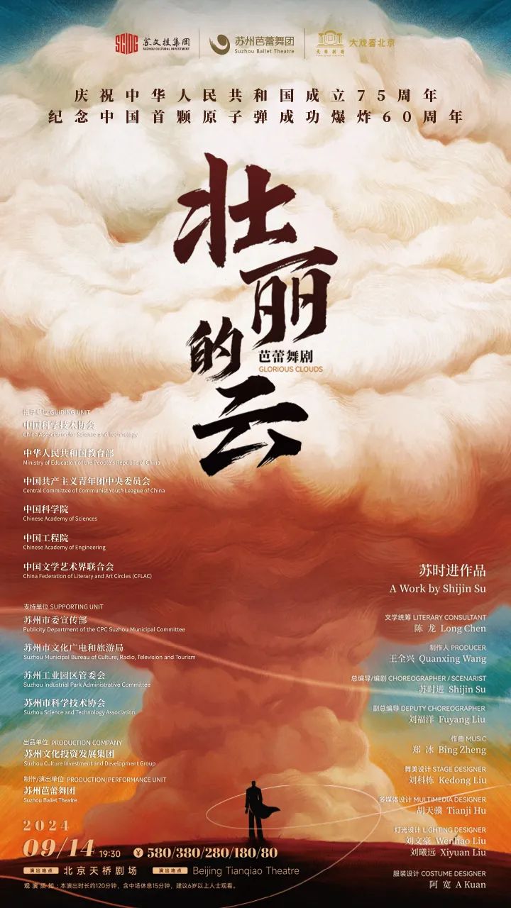 《壮丽的云》选取“两弹一星”元勋的真实事迹为蓝本,通过芭蕾的形式,深情再现了老一辈科学家在艰苦卓绝的环境中,攻克重重难关,完成原子弹研制的壮丽征程。
