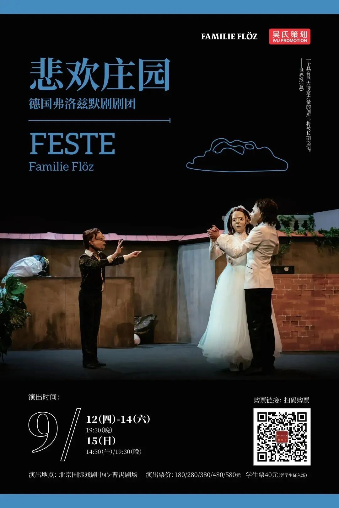 还记得今年6月曹禺剧场上演的《安德鲁与多莉尼》带来的感动吗?无声的演绎娓娓道来生命的悲欢离合,定格的面具掩盖不住剧场内动人的情感流动,为观众留下了难忘的戏剧记忆。如果你曾被《安德鲁与多莉尼》打动,那你一定不能错过另一部用无声治愈世界的重量级作品——来自德国弗洛兹默剧剧团的治愈系幻想面具默剧《悲欢庄园》。9月12日-15日,《悲欢庄园》将在北京国际戏剧中心·曹禺剧场全国首演,讲述一个关于追求个人幸福的悲喜剧故事,再度带来超越语言的温暖力量。