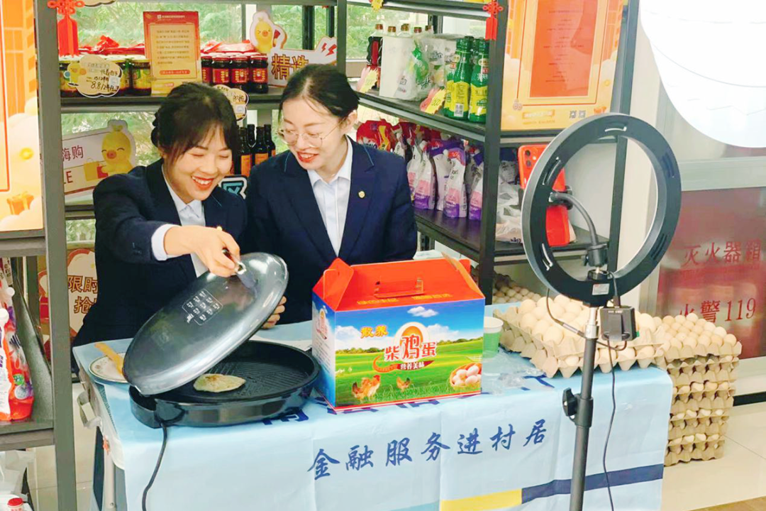北京顺义银座村镇银行工作人员通过直播的方式助力农产品销售。