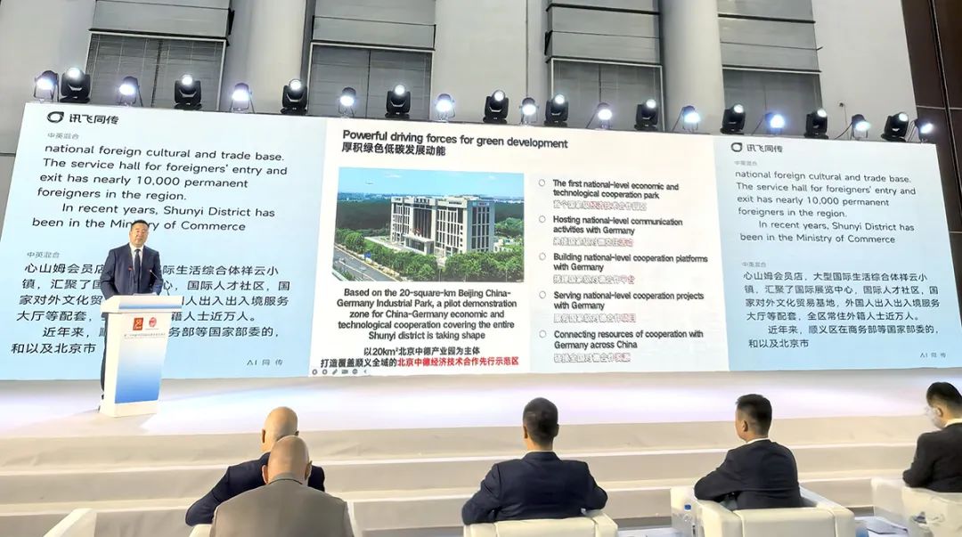 作为国内对德对欧园区代表,顺义区经济和信息化局局长、北京中德国际合作产业园管理委员会主任周靖慧在中欧合作园区专场对接活动上,向与会嘉宾介绍了顺义区及北京中德经济技术合作先行示范区在新能源智能汽车、第三代半导体、航空航天、智能装备、高端绿色制造等领域的发展成果,展现了在科技创新、产业基础、区位优势、国际化环境等方面的资源优势。