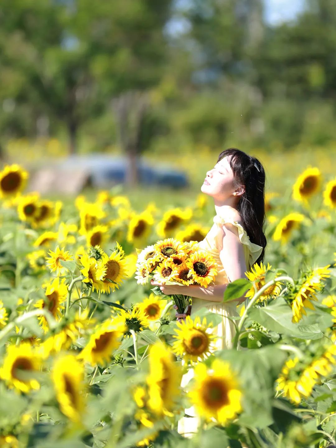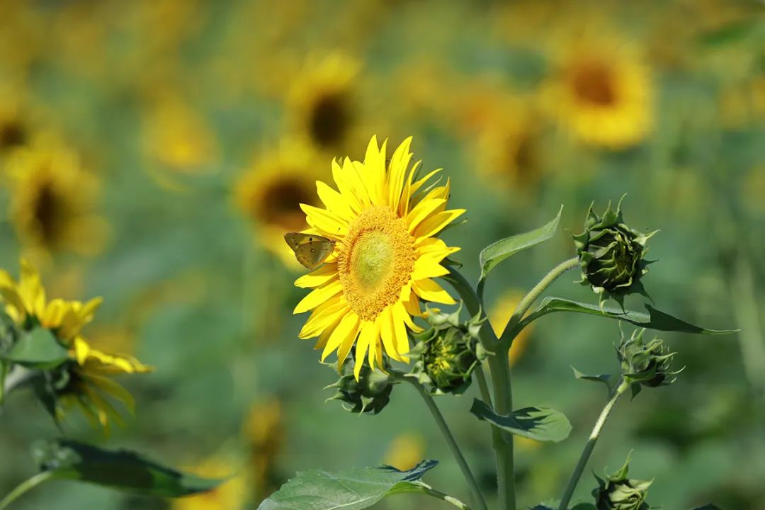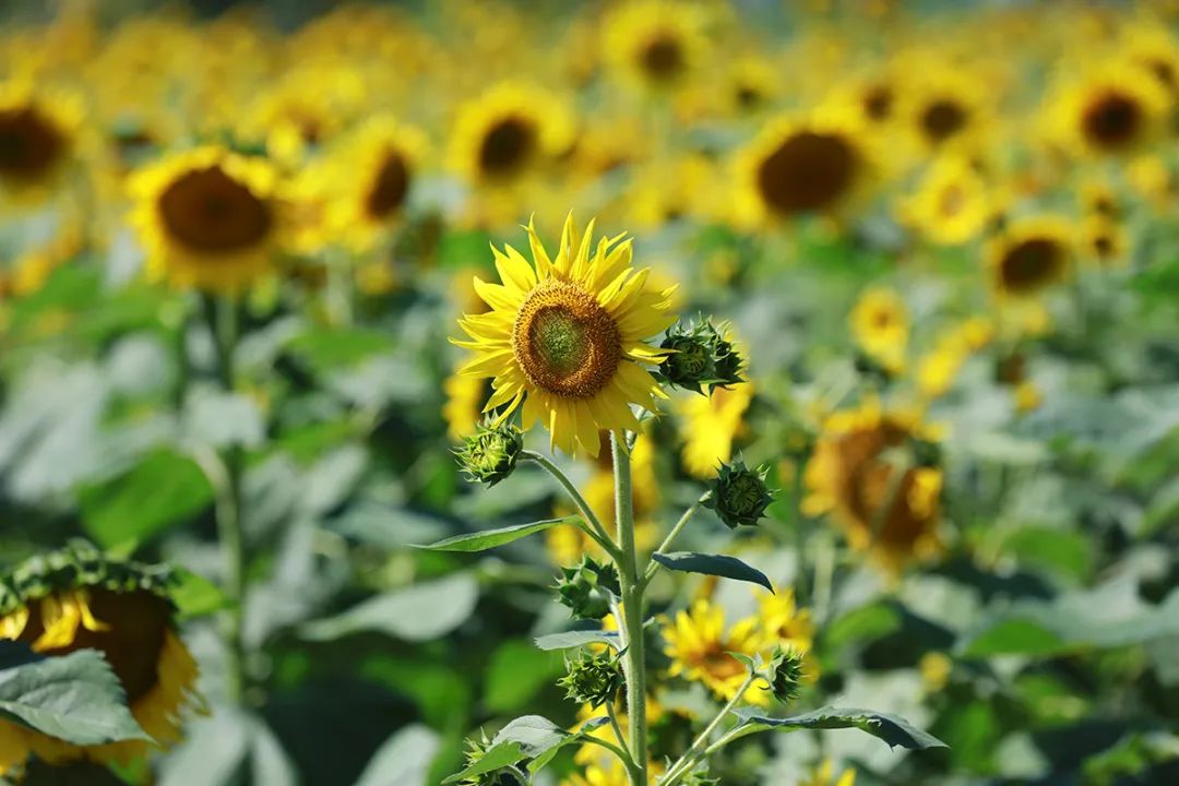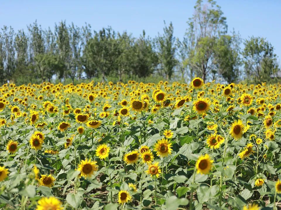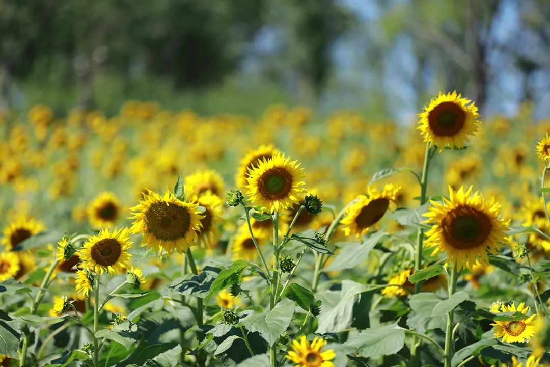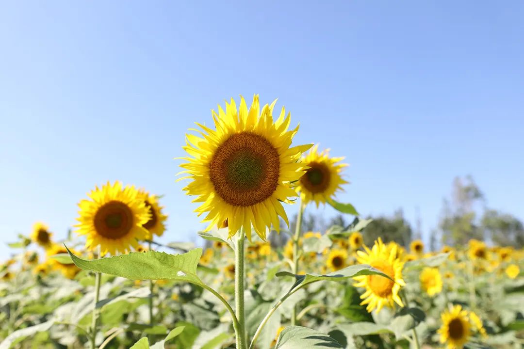 步入这片花海,便如同踏入了童话的世界。一朵朵向日葵像在热情地向游客招手示意。那圆润饱满的花瓣,恰似艺术家精心雕琢的艺术品,每一朵都散发着独一无二的魅力,令人沉醉其中,难以自拔。