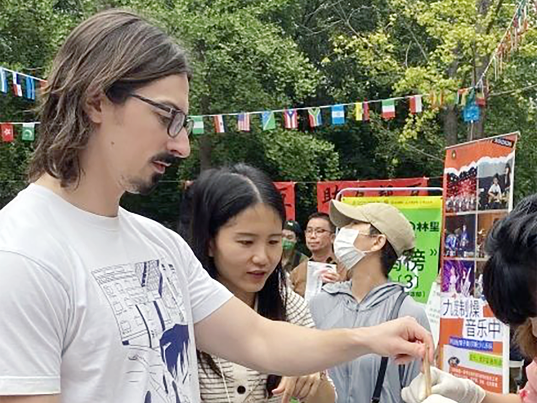 ▲游客体验非遗漆扇制作