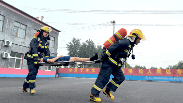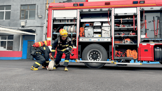 下午还是长达3个多小时的训练,包括火场登高、火场破拆、火场供水等6个大项、20多个小项。