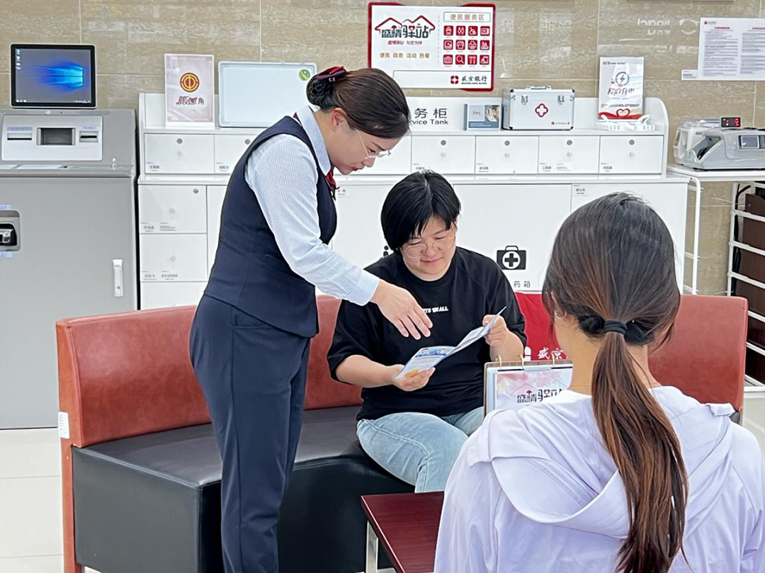 盛京银行北京顺义支行设置的“盛情驿站”,可为市民提供便民设施、休憩、热餐、饮水、金融知识宣教等服务。盛京银行北京顺义支行行长郭琦表示:“我们始终以客户为中心,注重服务细节,特别是针对重点群体,提供了婴儿车、轮椅助停区域以及盲文业务指南等设备,确保每位客户都能享受到便捷、贴心的金融服务。”