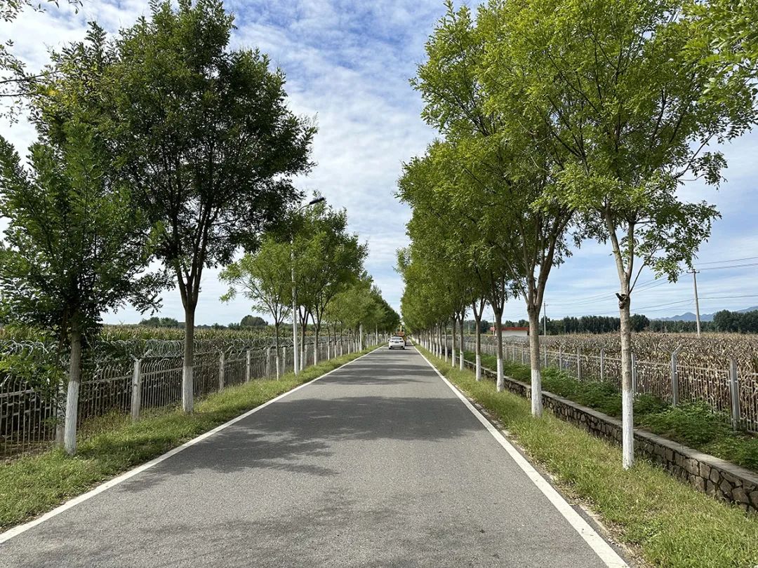 豹东路是一条乡村公路,道路平整、绿树葱郁。路侧的树木因生长旺盛遮挡了路牌和路灯,对市民出行造成影响,绿地的杂草和边沟内的枯枝落叶也影响了道路环境。赵全营镇积极开展秋季环境整治,组织养护人员排查并治理相关问题。