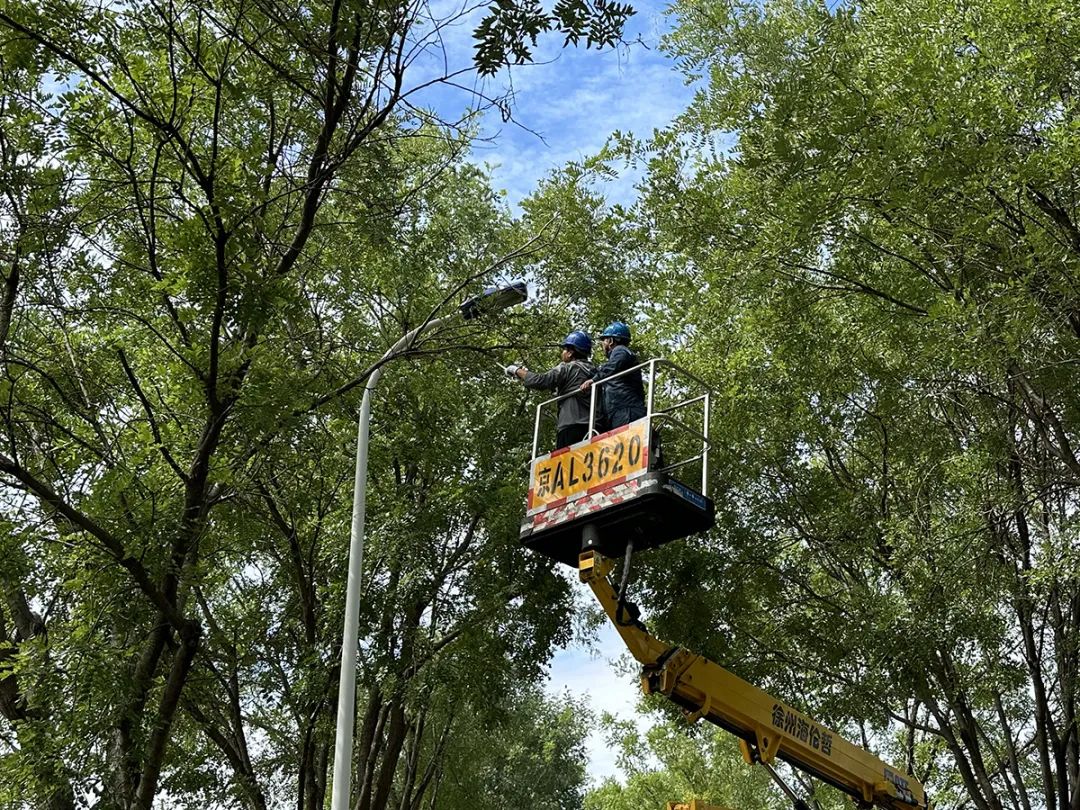 在赵全营镇豹东路,一台升降机缓缓升起,养护人员站在升降机内,手持剪刀修剪低垂树枝,原本被遮挡的路灯完全露了出来。边沟内,养护工人采用人工与机械相结合的方式清理杂草和枯枝落叶。“我偶尔会从这条路经过,今天发现树木被修剪了,边沟也清理了,环境更好了。”市民蔡玲说。