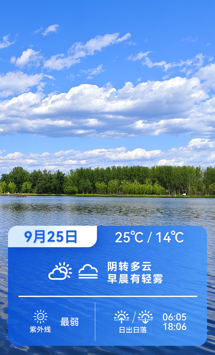 白天阴转多云,早晨有轻雾