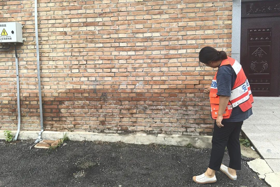 10时25分,陈家坨村灾害风险隐患信息报送员管梓彤重点巡查村内危房、地质灾害隐患点位时,发现村西庞继东家房屋经过多日大雨冲刷浸泡,红砖墙体已出现严重渗水现象。该墙体为双层结构,且该房屋已建造50余年,她判断水已深入浸泡内墙土坯,存在倒塌风险,于是立即上报。