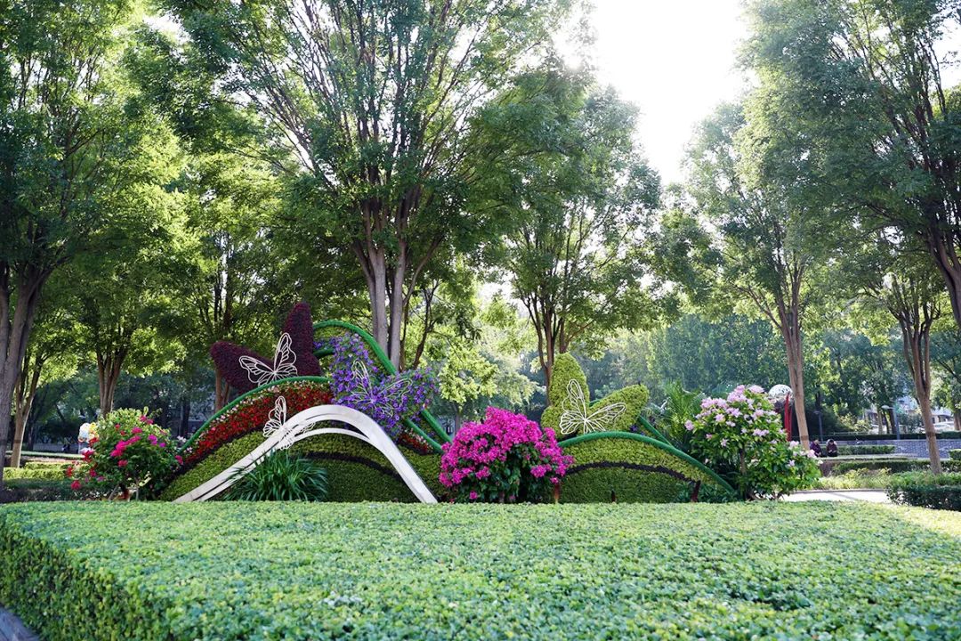 北京醇绿地内,“花香引蝶”花坛则以一幅生动的自然画卷迎接每一名市民。花坛以变形的山形线条为背景,配以盛开的繁花和飞舞的彩蝶,描绘出一幅生动和谐的画面。