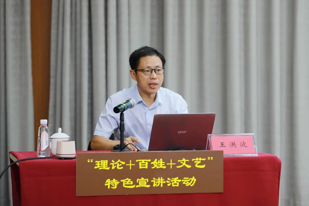活动现场,宣讲团理论宣讲员、首都师范大学马克思主义学院副院长、教授王洪波围绕“实施乡村振兴战略,推进农业农村现代化”主题,从“乡村振兴及其推进意义”“乡村振兴战略推进取得的成绩及案例展示”“深度推进乡村振兴战略的着力点”等方面开展宣讲,结合典型案例和视频,通过以小见大的方式,多角度宣讲党的创新理论成果。