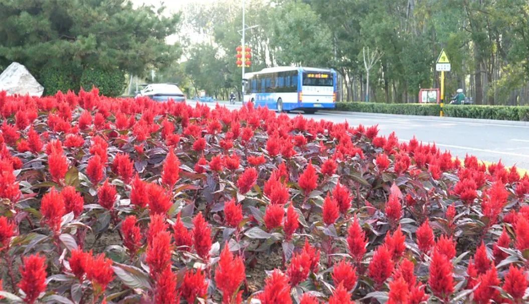 区园林绿地管护中心精心策划,在顺安路布置花卉景观,精选21952株鸡冠花装扮,通过匠心独运的设计,打造出既美观又富有动感的视觉效果,为节日增添喜庆气氛。