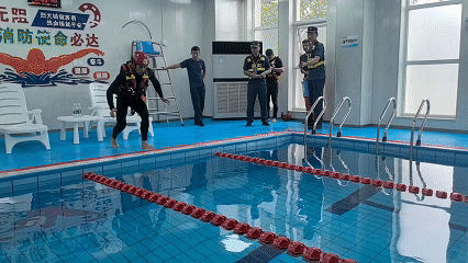 只见参赛选手快速下水,制作绳结,30秒内对急救模拟人实施岸上急救操作……