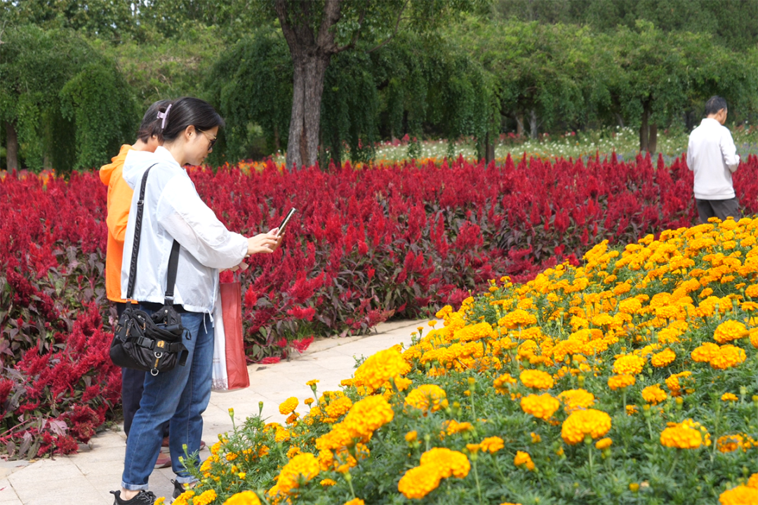 秋天的汉石桥湿地公园,尚未褪去的绿和热情的红黄融为一体,园中可徒步、骑行、划船,入目是自然之色,入耳是清脆鸟鸣。