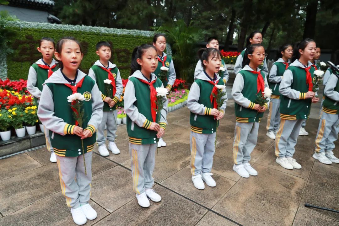 随后,少先队员代表唱响中国少年先锋队队歌《我们是共产主义接班人》。8名武警礼兵手抬花篮缓步行进至烈士纪念碑前,向烈士敬献花篮。龚宗元、崔小浩、周新春等区领导上前整理花篮缎带,向革命英烈致以崇高的敬意。参加活动的全体人员向烈士纪念碑三鞠躬并敬献鲜花。