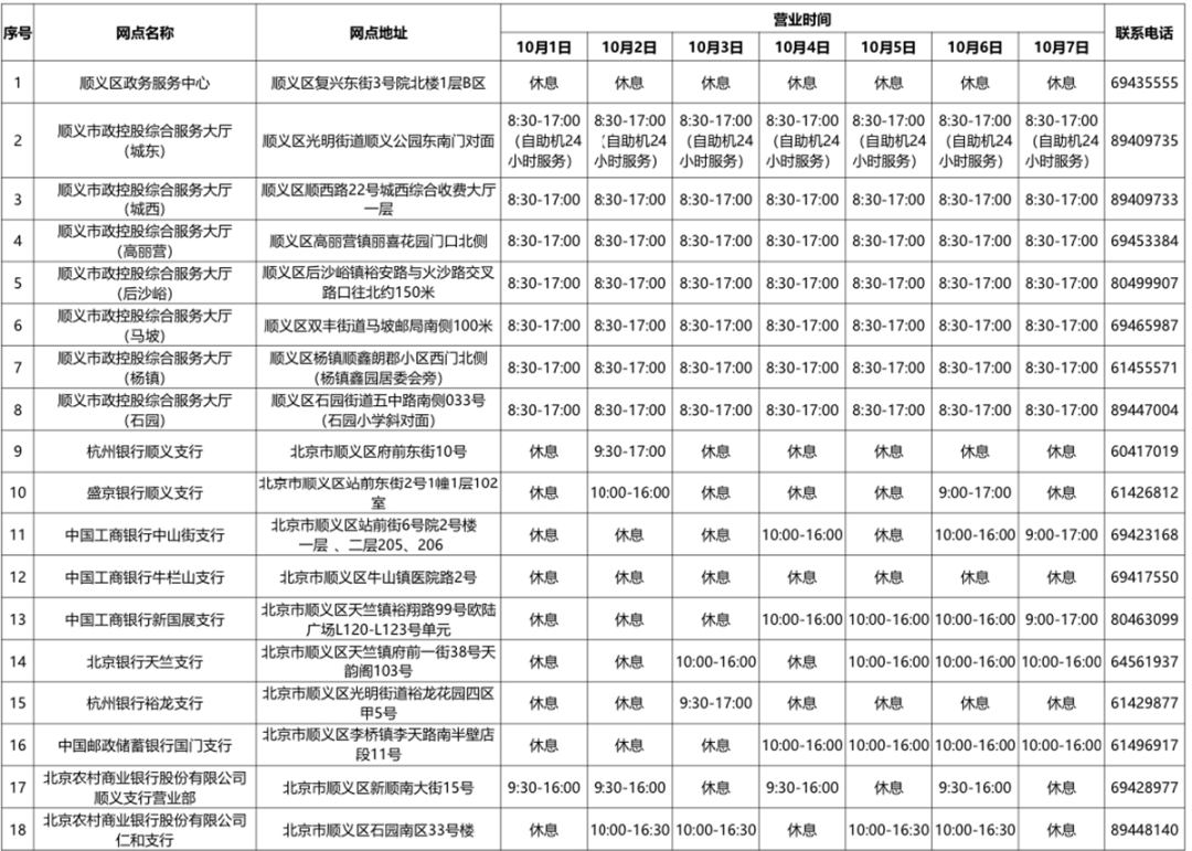 @顺义市民,国庆假期“水气热”综合服务大厅和网点营业时间、电话全在这儿——