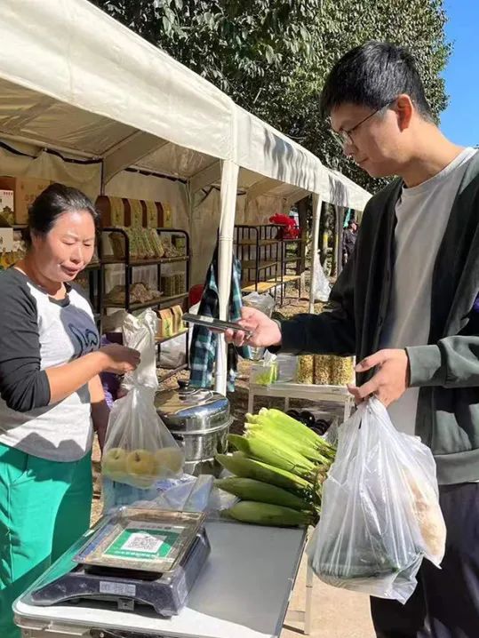 市民品尝、购买农产品。