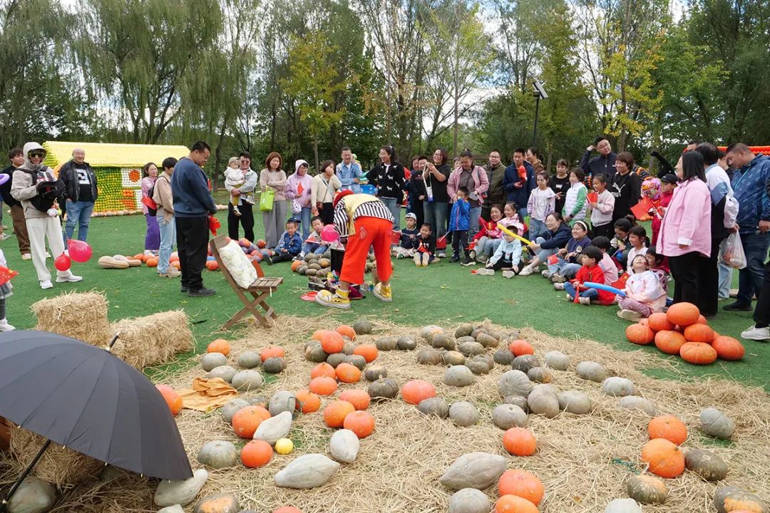 现场还举办了丰富多彩的趣味活动。亲子南瓜彩绘、运南瓜比赛、小丑互动、拔河比赛……让游客在一展身手的同时,尽情享受快乐的亲子时光。“我带着全家来玩儿,感觉这里布置得特别好看。孩子和好多小朋友一起参加了运南瓜比赛,玩得特别开心。”游客张女士说。