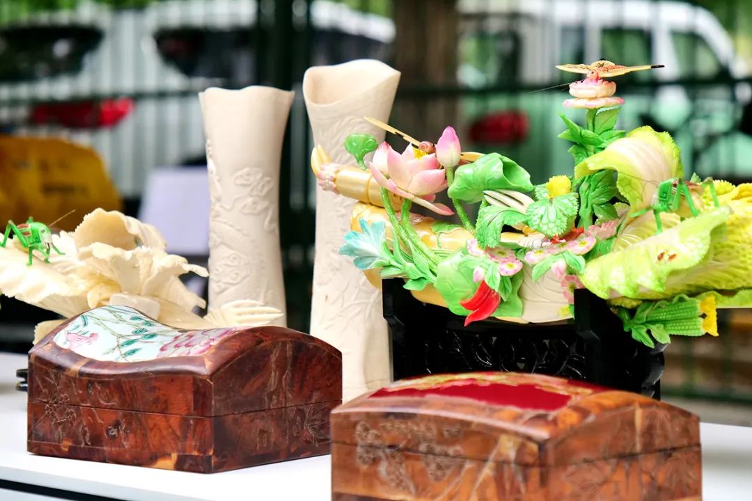 非遗展示专区深受市民的喜爱。在这里,一街龙灯会、曾庄大鼓、高各庄骨雕、张家务柳编、押花葫芦五大非遗项目的传承人在现场手把手教学,让市民深刻领略传统技艺的美妙。