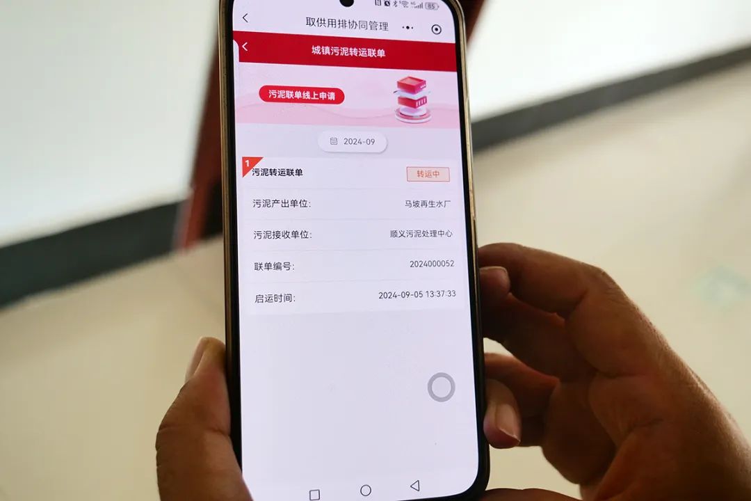 记者来到马坡再生水厂看到,生活污水流入污水处理厂,经过一系列工艺流程后产生脱水污泥。以往,水厂工作人员通过电话、派发纸质联单的方式通知运输单位,将污泥运送至处置单位进行无害化处理,在这一过程中污泥处理流程记录繁琐,容易出现纰漏。