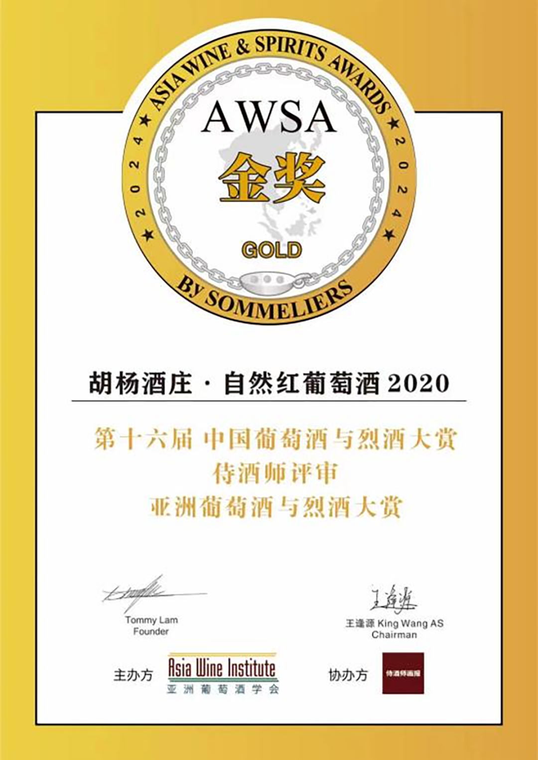 ▲ 自然红葡萄酒2020在大赛中获金奖。