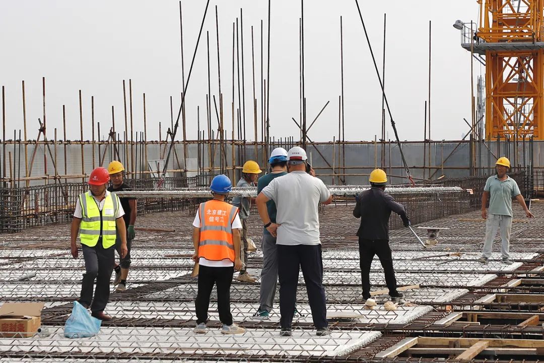 记者在施工现场看到,大型机械轰鸣作响,施工车辆来回穿梭,钢筋绑扎、叠合板安装......工人们在各自岗位上紧张有序地忙碌着。