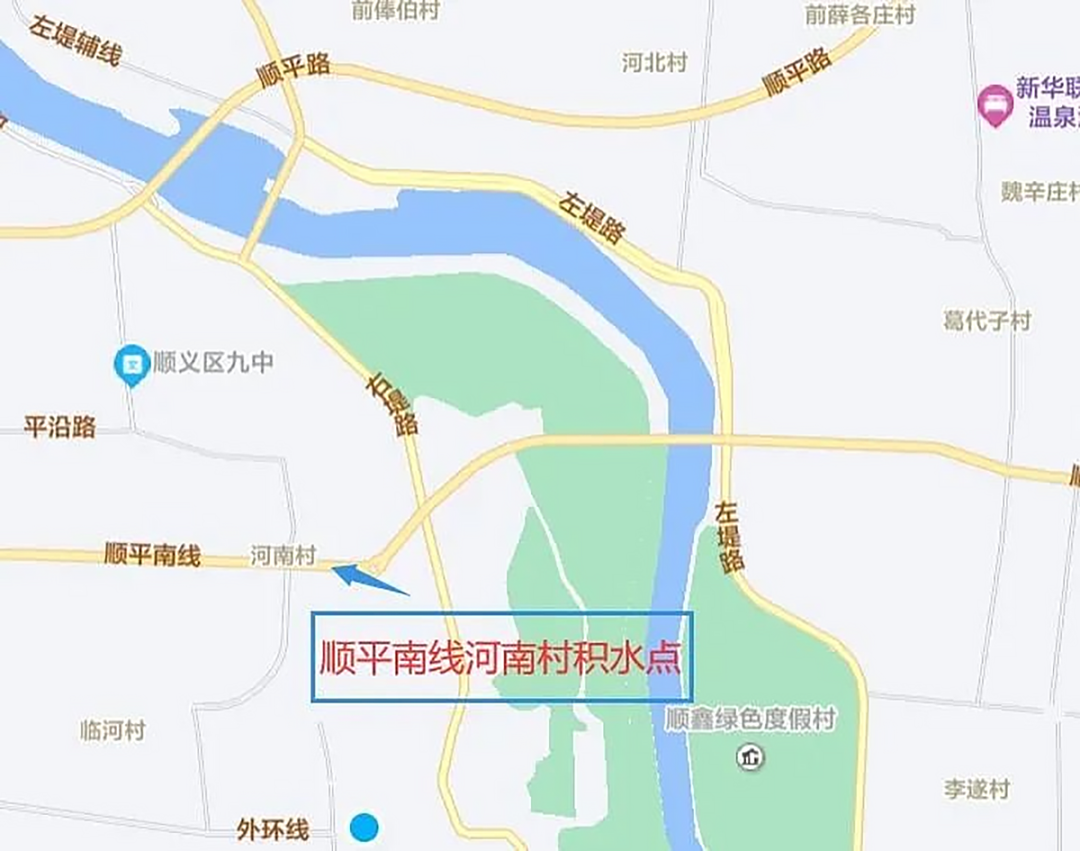 顺平南线河南村积水点位置。