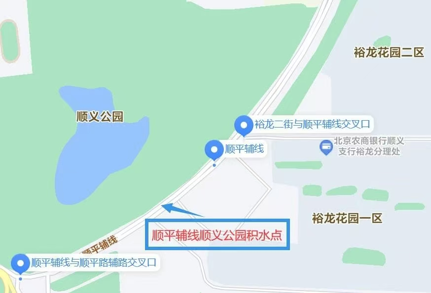 顺平辅线顺义公园积水点位置。