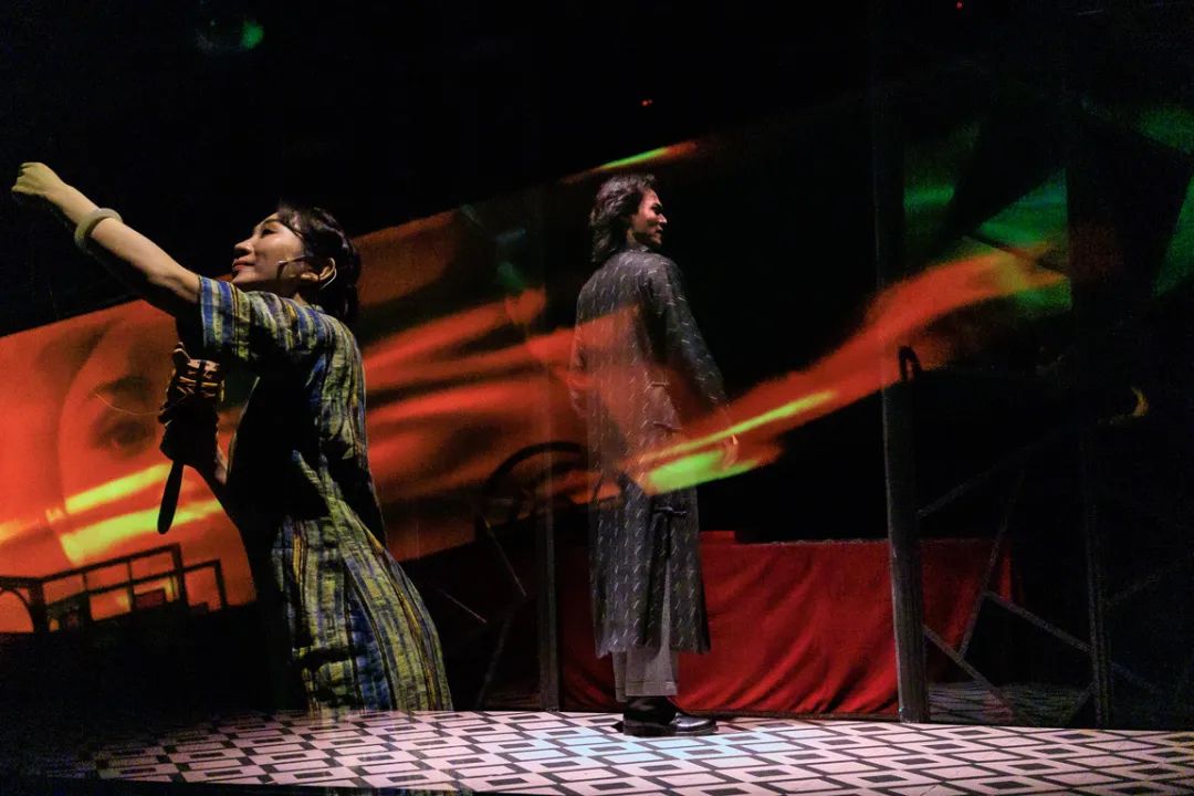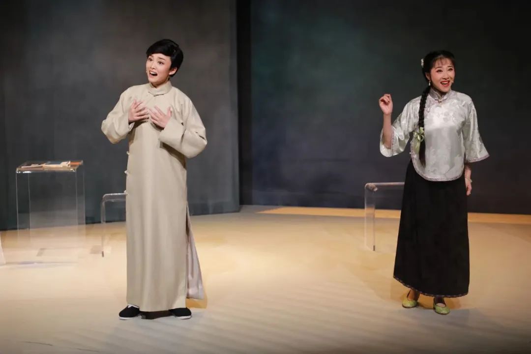 剧目从当代切入,以老年王秀兰的回忆为导引,穿插叙述不同历史时期(1958年和1991年)的故事,将过去与当代交织呈现,全景式构建了跨越六十多年的生动史诗。舞美方面冰屏、镜像、舞台机械、智能遥控的使用,给戏曲演员表演提供更多突破的可能与空间,具有“记忆的闸门”象征性的动态冰屏的运用让舞台叙述更加流畅自如,在呈现方式上兼具戏曲韵味与现代科技感。
