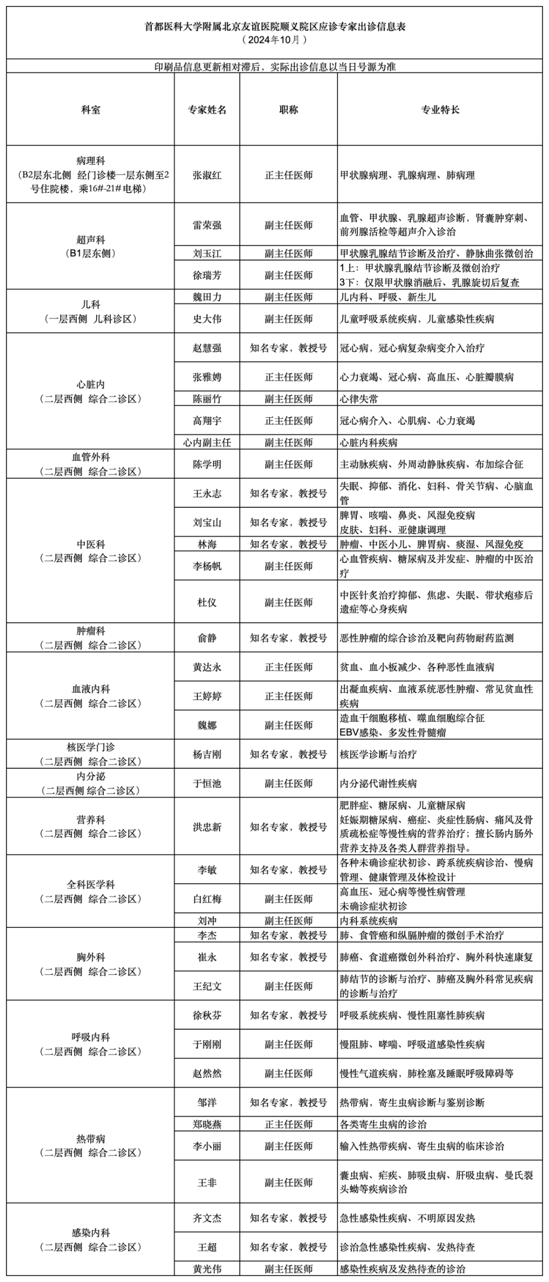 北京儿童医院顺义妇儿医院专家出诊信息。