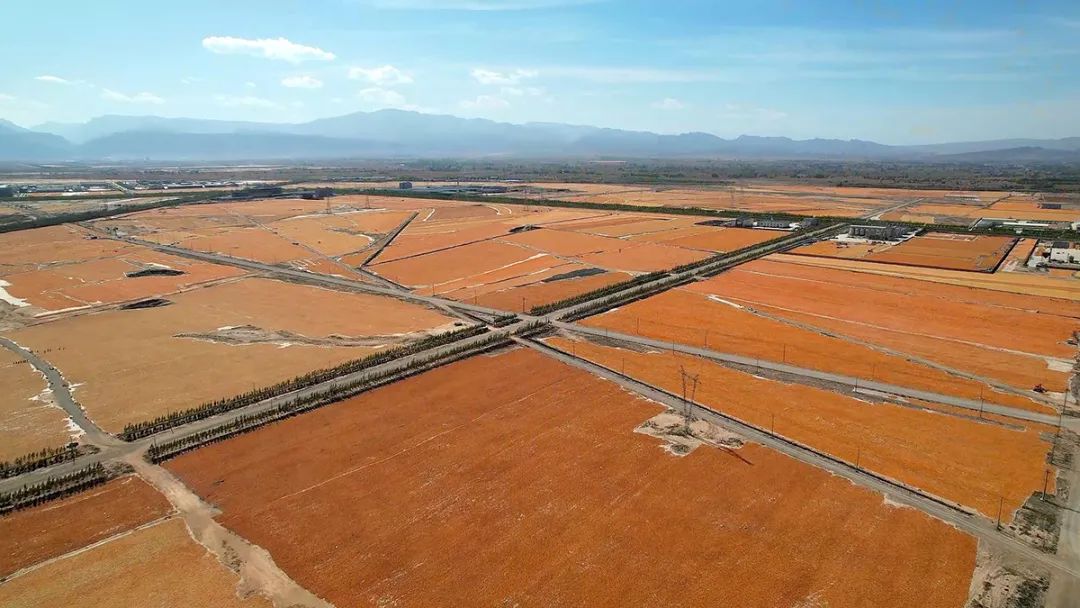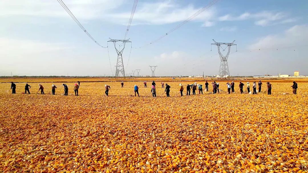 玉米采收完成后,通常采用戈壁荒滩平面自然晾晒方式,分品种、分基地、分批次进行科学晾晒,利用当地光、热等资源,达到玉米果穗干燥脱水效果。针对MC812、NK815等核心品种会采取部分鲜穗机械烘干形式,确保市场及早供应。