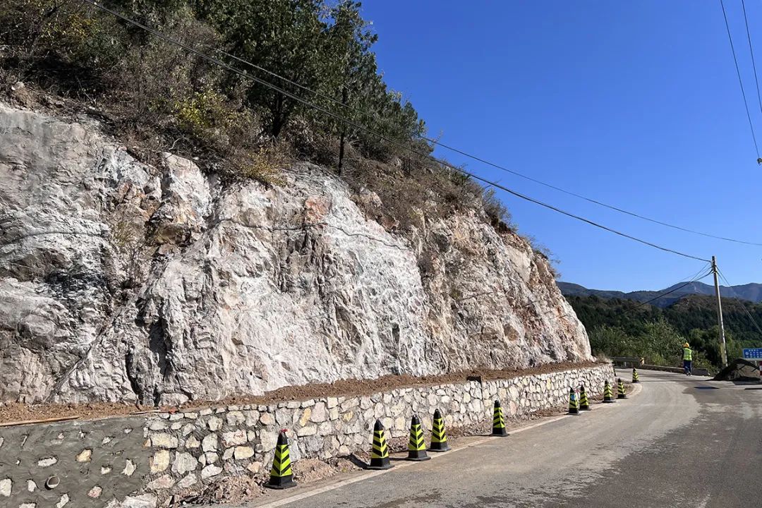 记者在位于贾山村贾茶路起点处施工现场看到,大型机械设备正在作业,工人认真细致地砌筑挡土墙,同步施工的还有防护网建设工程。“为确保防护网牢固,我们采用每隔2.5米至4米在山体内嵌入锚杆的方式进行固定。”北京城建勘测设计研究院有限责任公司项目负责人谢国军介绍。防护网分为内外两层,内层为细网,可阻挡碎石细沙;外层为粗网,可确保防护网承受较大冲击力。这样的双重保护将保障过往车辆及行人的安全。