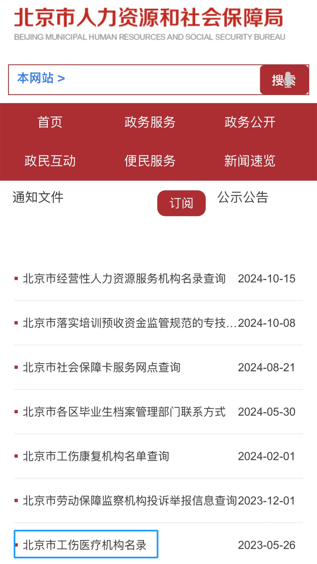 北京市人力资源和社会保障局官网→便民服务→机构名录→北京市工伤医疗机构名录查询。