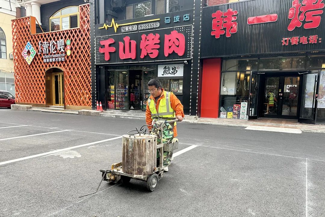 “商业街铺设沥青路面后,道路更加平整、开阔,停车位也比之前更充裕。现在用餐高峰时段,顾客停车方便多了。对于我们商户来说,‘门前三包’区域的卫生也更容易维护了。”提到马坡镇佳和宜园社区东侧商业街新铺设的路面和施划的停车位,商户康佳赞不绝口。