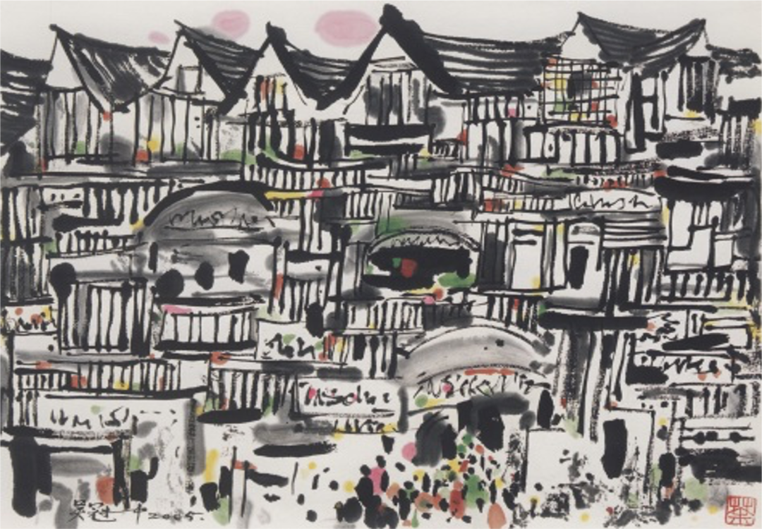 吴冠中是杰出的“人民艺术家”,他志在用艺术造一座连通东方和西方、人民和专家、具象和抽象之间的桥。20世纪40年代,他留学法国,坚持融汇中西艺术,致力于“油画民族化”与“中国画现代化”探索。他走遍祖国山河,深入自然进行写生创作。在艰苦卓绝的艺术实践基础上,他提出的抽象美、形式美,“风筝不断线”,艺术审美的雅与俗,以及中国画的传承与创新等艺术思想,深入人心,影响深远。吴冠中1964年调入中央工艺美术学院任教,他一生践行美育,倡导艺术与科学的融合创新,在清华大学设立 “吴冠中科学与艺术创新奖学基金”,鼓励面向末来的创新人才培养。本单元以“东寻西找”、“沧桑入画”为主题,展现他融汇中西的艺术创作特点,以及心物交融、“山川与予神遇而迹化”的艺术世界。