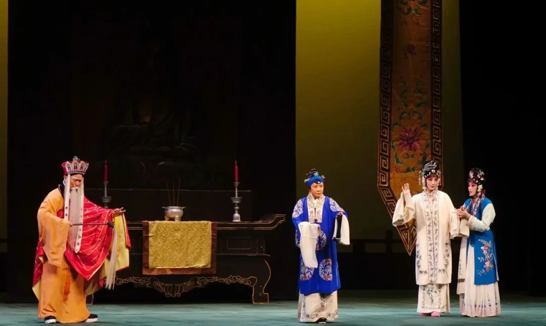 晋剧《望海楼台》根据晋剧传统戏《打神告庙》进行改编。剧情结构利用了具有象征意义的中国古琴贯穿全剧,“抚琴遥祭”“飞书落琴”“弹琴表情”“泪别赠琴”“逃路丢琴”“罗袖打琴”“香魂断琴”“抱琴探情”“琴讨浪鸣”等情节,将敫桂英雪路救起王魁书生,赠琴送银赴考,真情不变苦熬苦等,却等来王魁一纸休书,依然抱琴上京,以琴续情的悲惨命运和既善良又可怜的行为凸显在舞台上。将人们耳熟能详的故事深化到一定的美学欣赏高度,丰富了文化含量,拓宽了社会意义。