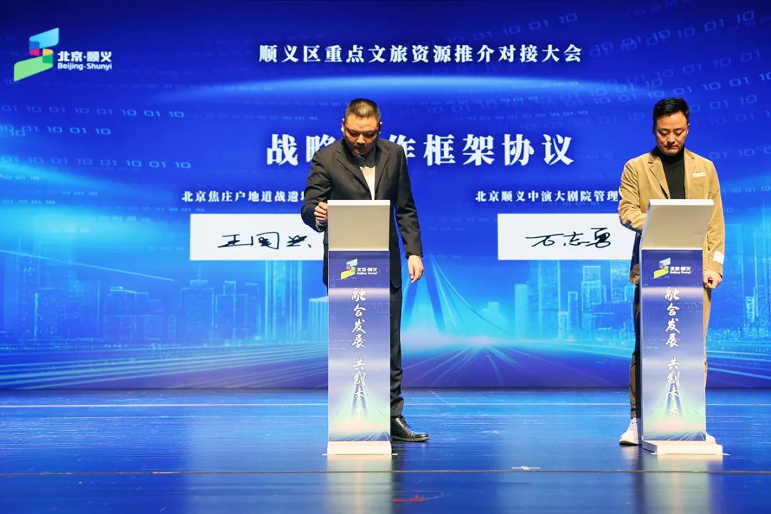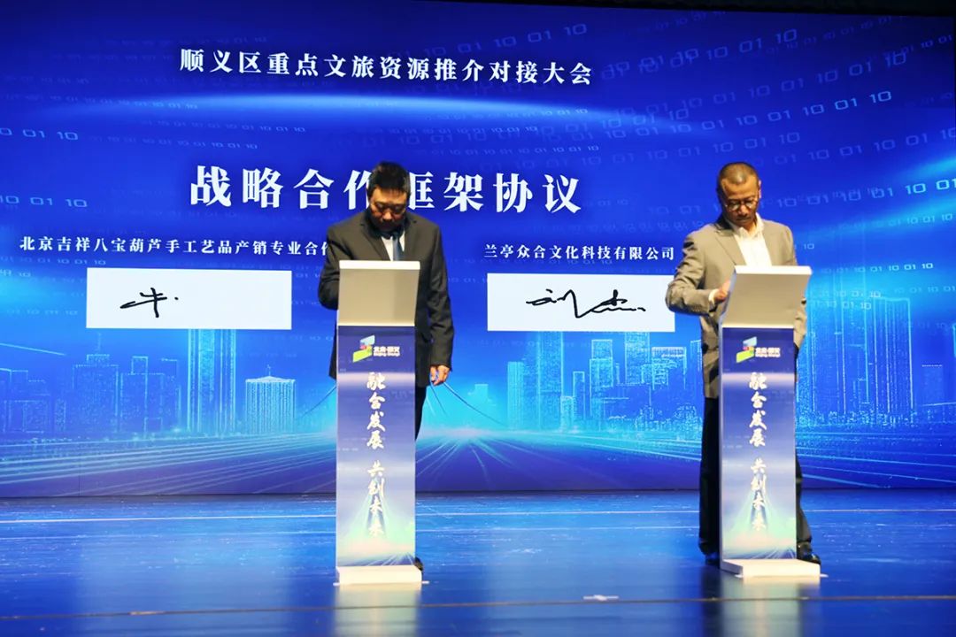 活动现场举办了意向合作签约仪式,怡生园会议中心与顺义文旅集团、邮政集团顺义分公司与顺义文旅集团、北京吉祥八宝葫芦手工艺品产销专业合作社与兰亭众合文化科技有限公司、顺义大剧院与北京焦庄户地道战遗址纪念馆分别签署意向战略合作框架协议,为后续高质量融合发展奠定坚实基础。