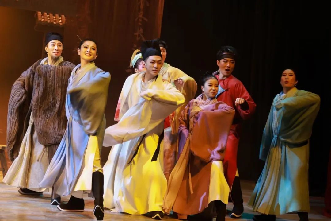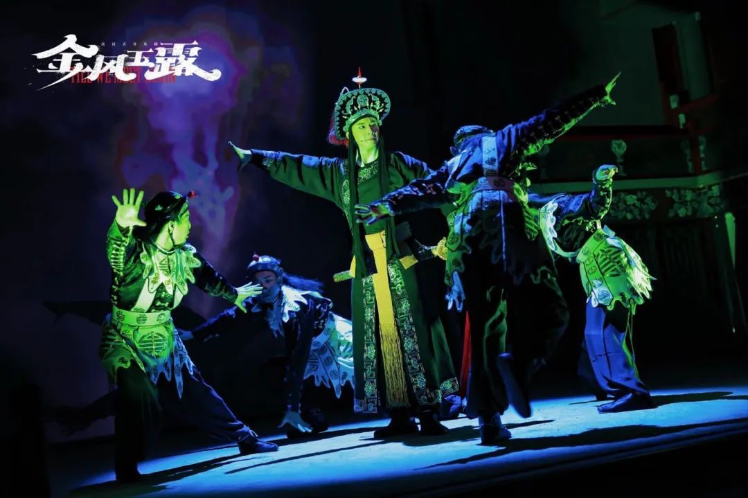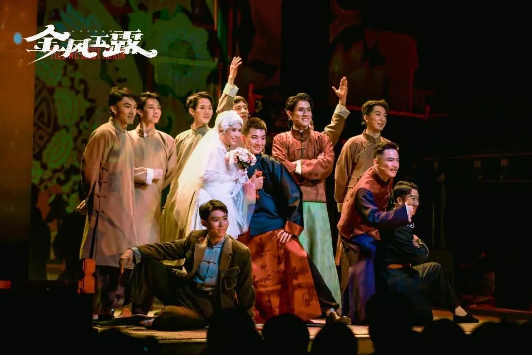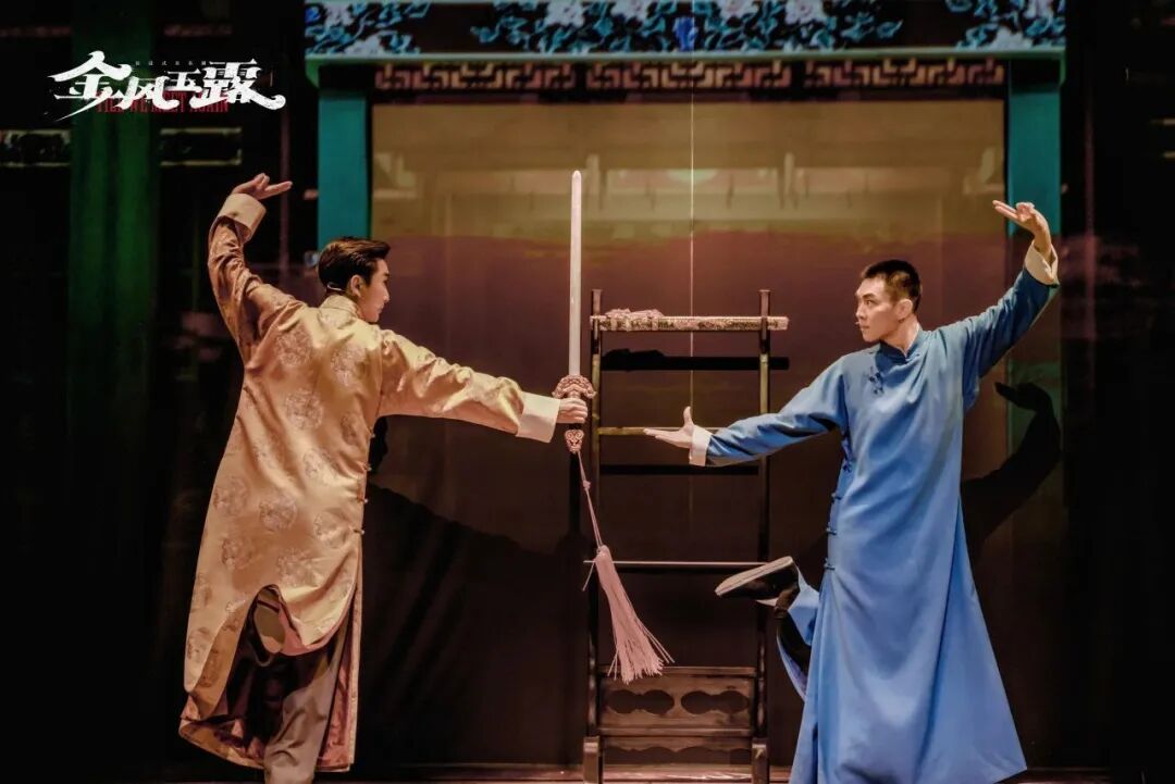 百年会馆提供360度环绕式声场,也将观众的感官全方位包裹,几度“炸开”毛孔。梨园题材命题之下,昆笛、京胡、琵琶、唢呐等戏曲音乐元素被巧妙地镶嵌其中,传统与现代相织相融,也令《金风玉露》不同于其他音乐剧,开拓了音乐剧市场上全新的中国式表达。