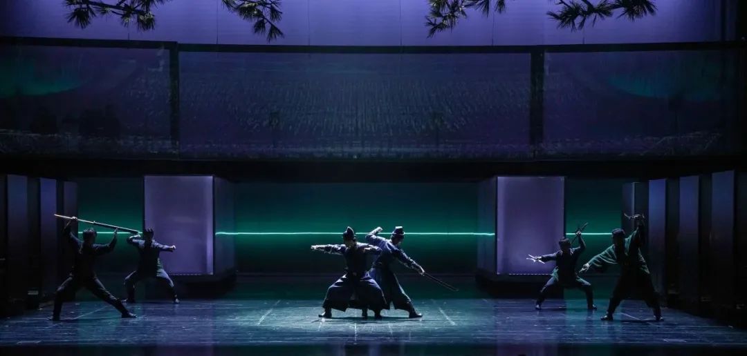 在舞剧创作中我们保留了原电影中戏剧张力极强且观众喜爱的人物角色,如孙均、张大、瑶琴、何立、武义淳、刘喜、丁三旺还有秦桧。但这些角色在舞剧中的形式推展完全不同,我们在电影人物性格的基础上做了一定程度的变通。张艺谋导演的电影中有很多喜剧元素、矛盾冲突等要素高级的使用在叙事中,在转换到舞蹈的过程中,是无法原样复制的,展现的角度、方式、方法会发生变化,与电影相比较“是”又“不是”的舞台呈现因此诞生。