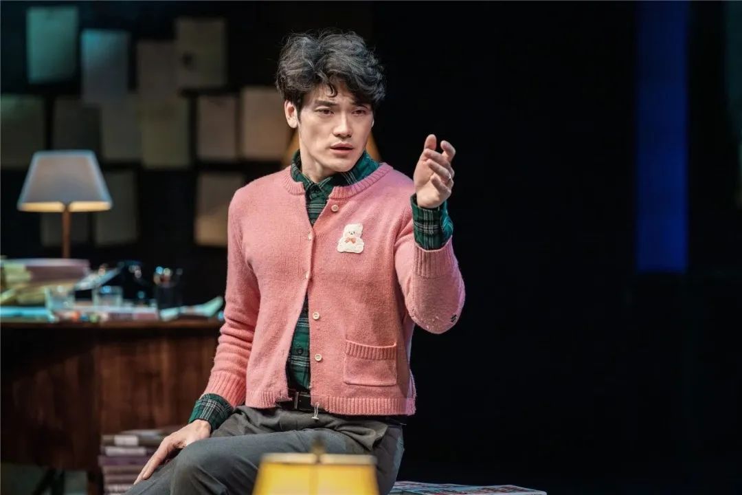 舞台美术设计别具一格,观众们如同全体置身于主人公诺克的居所中——一座封闭静谧的海岛上唯一的建筑物。完全开放的洗手间,清冷的光线,营造出一种离群索居的氛围;随处可见的手稿,堆叠的书籍,壁炉里燃烧的火苗和台灯渲染出的气氛,又在疏离中构建了一丝暖意。考究的细节处处描绘出人物的生活状态,反映出剧中人内心世界。