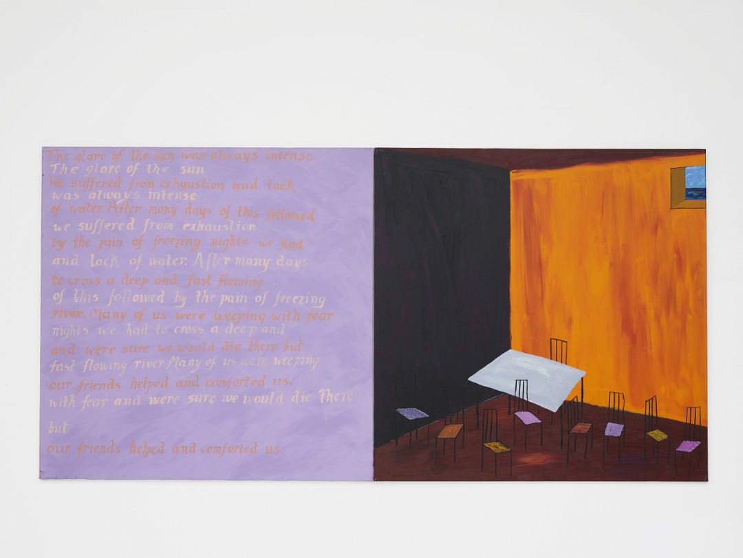 卢贝娜·希米德,《太阳的眩光(B计划)》,1999,布面丙烯,122×244cm。©卢贝娜·希米德。图片由艺术家、伦敦Hollybush Gardens画廊和纽约格林·纳夫塔利画廊提供,摄影:安迪·基特。