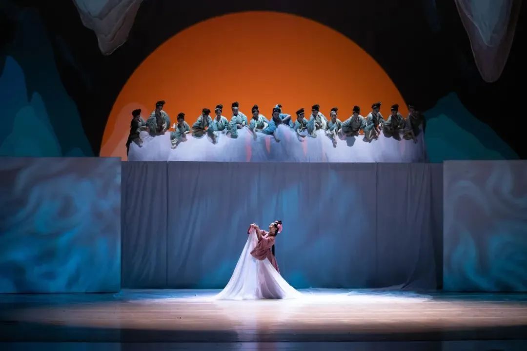 舞剧《西施》采用了古今融合的叙事手法,将西施的爱情幻想与越王勾践为复国大业营造的纸醉金迷的假象相互交织。这种叙事方式不仅重现了历史故事,也赋予了角色更深的现代意义,使得传统故事与现代表达在舞蹈中实现了完美融合。