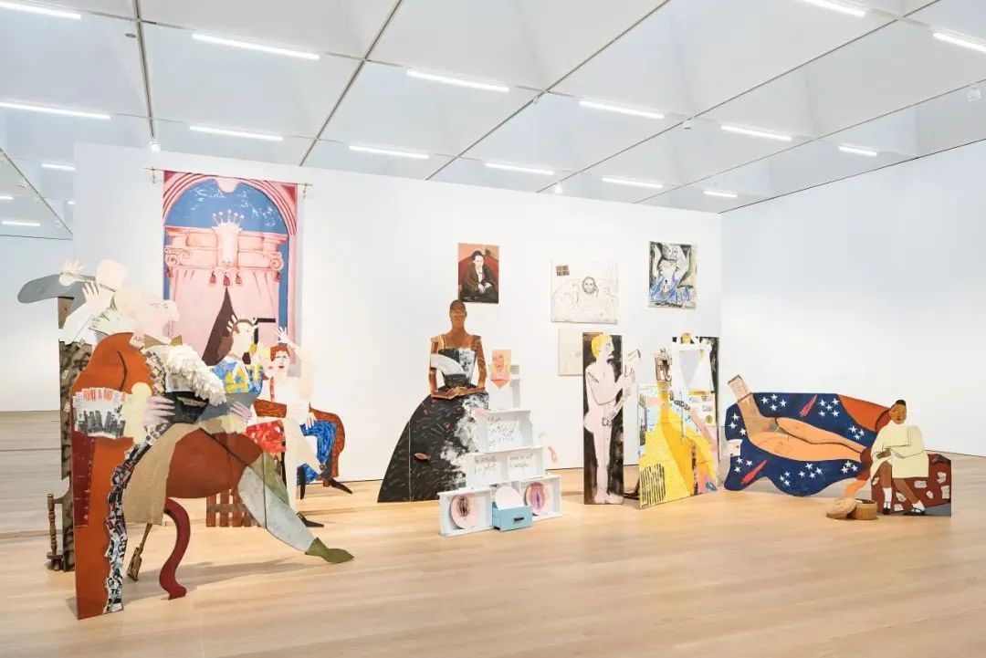 卢贝娜·希米德,《金钱的命名》,2004,10个人形立牌,尺寸可变。由艺术家、伦敦Hollybush Gardens画廊和纽约格林·纳夫塔利画廊提供。“导航图”展览现场图,斯派克岛当代艺术中心,2017。©卢贝娜·希米德。图片由布里斯托尔斯派克岛当代艺术中心提供,摄影:斯图尔特·惠普斯。