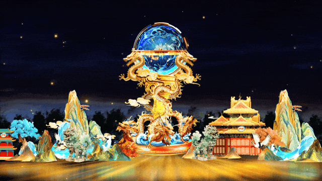中国馆的环抱式360°全景沉浸式光影秀,春节期间还有震撼无人机表演,与墙体光影交相辉映美轮美奂。