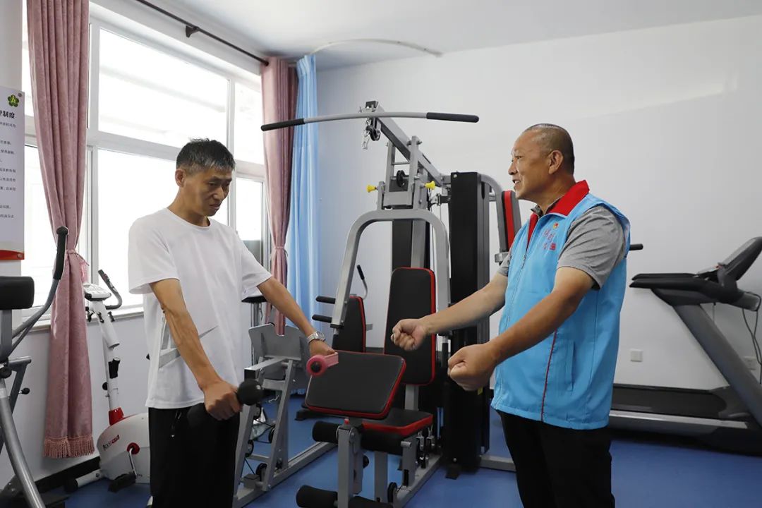 陈小兵(左)锻炼手臂力量。(资料图)