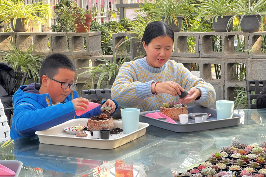 北郎中花卉展销大厅活动策划任阳娜介绍:“我们特别设计了赏花路线,比如精心打造的实景小花园、现代风的休息区、中式风的茶歇区和各类打卡点,让每个区域都有不同的风景,可以为家庭园艺增添灵感,同时也增加了赏花的趣味性。”