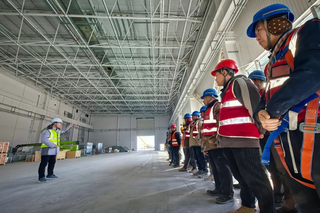 “高空作业大家一定要做好防护措施……”在北京航空发动机维修项目施工现场,管理人员正向高空作业工人进行安全提示。目前,项目主体已完工,正有序推进机电安装、室内装修、厂区市政管线施工等。