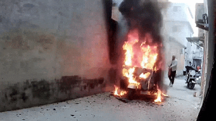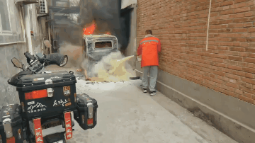 当时,李家桥村村民赵宇正在朋友家做客,忽然闻到一股刺鼻烧焦的味道,急忙出去查看情况。眼见现场火势凶猛,情况十分危险,赵宇迅速拿起就近的灭火器,对准车辆火焰底部进行喷射灭火。