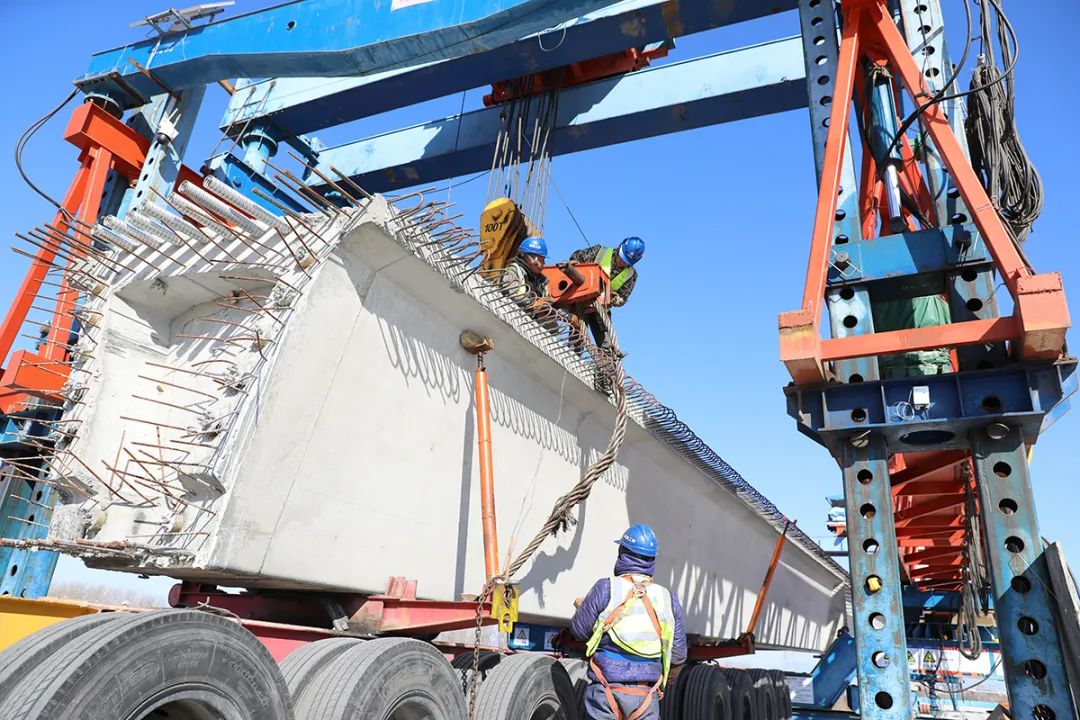 “目前,施工人员已全部就位,材料也准备就绪,实现全面复工。现阶段主要施工内容为桥面系和护栏施工,同步进行路基填筑、路面摊铺和路基防护等工程施工。桥梁计划今年5月实现主体贯通。”项目负责人张明阳介绍。
