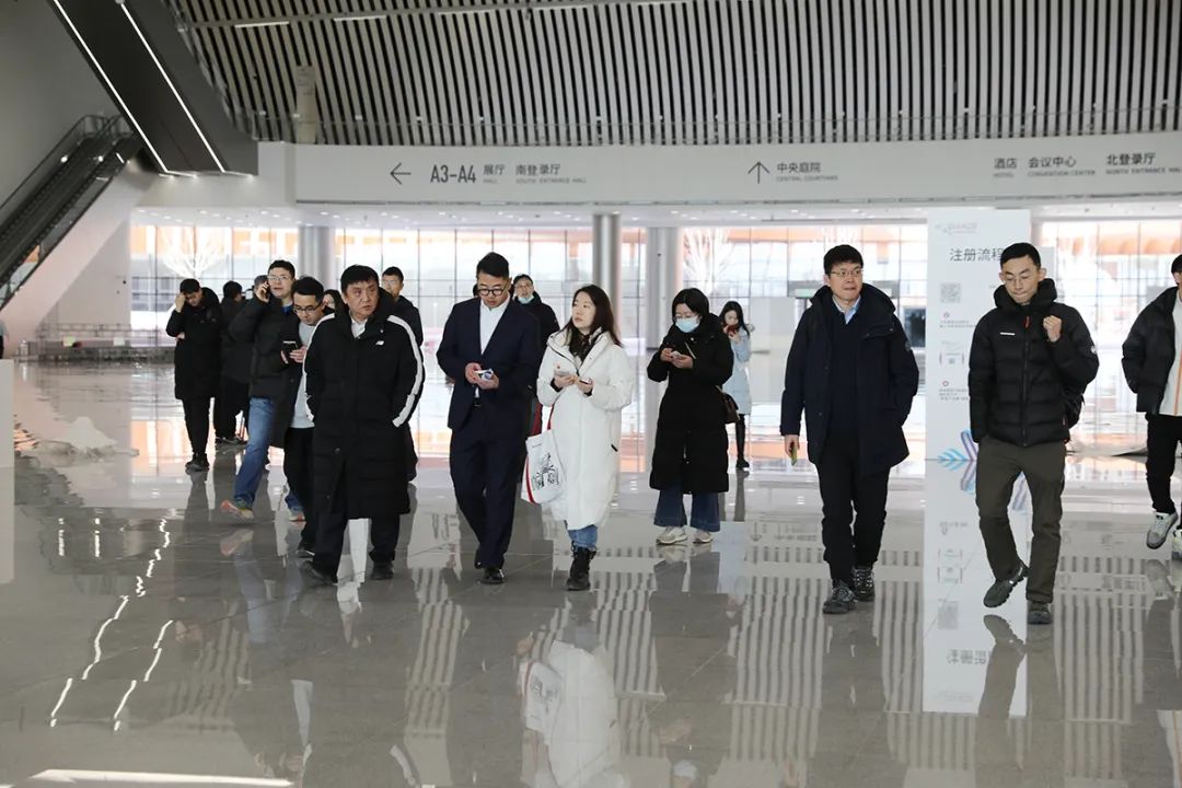 媒体团在首都国际会展中心采访。
